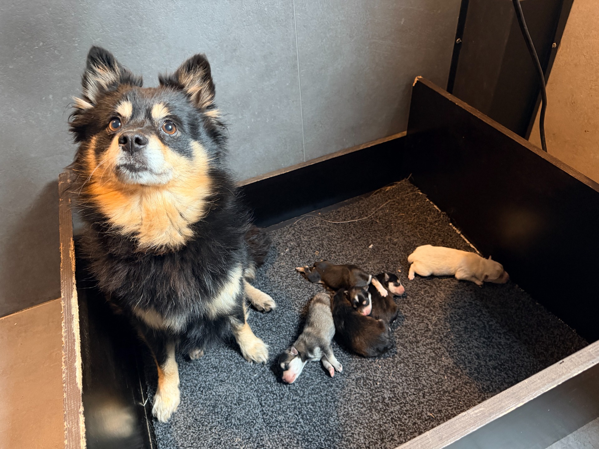 Onze Tooske is bevallen van 5 prachtige pups! De bevalling verliep vlot en alles is goed gegaan. Toos is een geweldige moeder en ze zorgt liefdevol voor haar puppy's. Het nestje bestaat uit 3 reutjes en 2 teefjes.